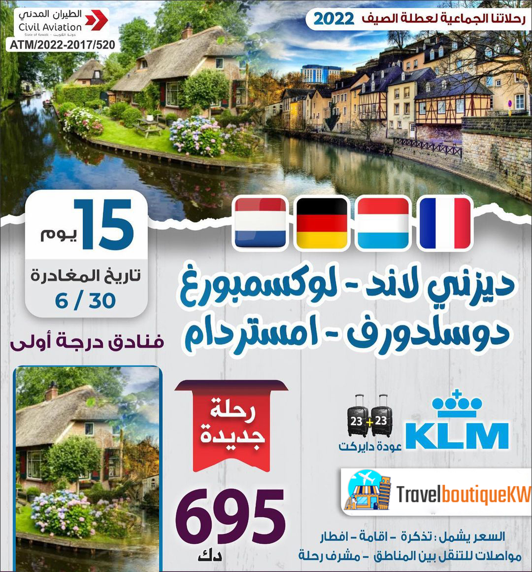 🗓التاريخ 6/30 المدة 15 يوم 14 ليلة🤩 يشمل تذكرة طيران على KLM ✈️ (العودة مباشرة) 23+...